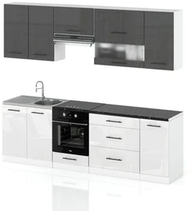 Meble Kuchenne Zestaw Kuchnia Marocco 2.6m Modułowa Szary Biały Połysk