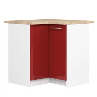Biała narożna szafka kuchenna 90cm na 90cm z frontami czerwony połysk. Szafka do zabudowy kuchennej modułowej.