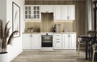 Duża ilość szafek i półek, które pomogą w organizacji kuchennego asortymentu. Pakowny zestaw, dzięki któremu zadbasz o porządek w sercu swojego domu. Solidne wykonanie pozwalające na wieloletnie użytkowanie. Najważniejsze informacje i cechy produktu: Wymiary: długość zestawu: