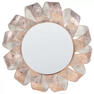 Lustro w stylu bohoStylowe wykonanie tego lustra ściennego doda twojemu wnętrzu klimatu vintage. Wykonane z wysokiej jakości metalu w ciepłych odcieniach miedzi, posiada uroczo zdobioną ramę w formie koronki. Zawieszone w salonie, sypialni, czy w hallu, optycznie powiększy pokój i stanie się jednym z ciekawszych akcesoriów. Szczegóły: Kolor: Biały, Miedziany. Materiał: Szkło. Dodatkowy materiał: