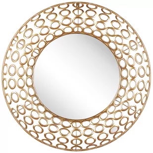 Okrągłe Lustro ŚcienneTo unikalne lustro wydobędzie charakter każdego wnętrza. Oprawione w złotą metalową, inspirowaną stylem eklektycznym ramę, przyciąga uwagę gości i nie pozwala przejść obok siebie obojętnie. Doskonale prezentuje się zawieszone nad komodą, na pustej ścianie nad kanapą lub obok szafy na korytarzu. Szczegóły: Kolor: Złoty. Materiał: Szkło. Dodatkowy materiał: Stal.