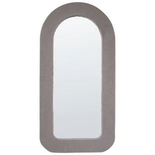Akcesorium wykonano z trwałego i miękkiego materiału bouclé, w beżowoszarym kolorze. Produkt jest bardzo łatwy do powieszenia na ścianie dzięki haczykom, umieszczonym na odwrocie. Minimalistyczny urok lustra czyni je idealnym uzupełnieniem salonu, sypialni czy przedpokoju we współczesnym stylu. Szczegóły: Typ produktu: Lustro ścienne Styl:
