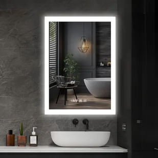wymiary: 80 x 60 cm kształt: prostokąt ilość diod: 120 diod na 1 metr żywotność diod: 50 000 godzin funkcja: zegar LED, odmgławianie Kolor diody LED: zmiana barwy światła biała zimna (6000K) - biała neutralna (4500K) - biała ciepła (3000K) jasność można przyciemnić przez długie naciśnięcie przycisku włączenia (lusterko musi być włączone) klasa energetyczna: A++ napięcie: 220-240V / 50-60 Hz typ wtyczki: VDE materiał: szkło bez miedzi i ołowiu 5 mm odległość od ściany podczas montażu: 3 cm stopień ochrony: IP44 (ochrona przed bryzgami wody) długość kabla zasilającego: ok. 1,5 m