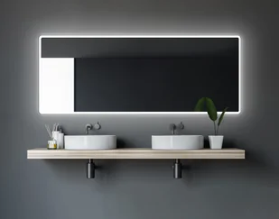 Główną atrakcją lustra ściennego jest piaskowana rama oświetleniowa LED, która jest zintegrowana z powierzchnią lustra. Dzięki nowoczesnej technologii LED i rozmiarowi 180 x 70 centymetrów, nie tylko własne odbicie jest optymalnie oświetlone, ale także meble łazienkowe są atrakcyjnie oświetlone, tworząc przyjemne wrażenie przestrzeni. Lustro łazienkowe LED z wysokiej jakości srebrną powłoką: Lustro LED ma czteromilimetrowe, pokryte srebrną powłoką szkło od producenta Pilkington, które jest wykończone wysokiej jakości fazowaną krawędzią. Dzięki takiemu wykończeniu lustro z oświetleniem jest wyjątkowo solidne, trwałe i łatwe do czyszczenia.