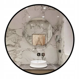 LUSTRO OKRĄGŁE DO ŁAZIENKI PRZEDPOKOJU CZARNE W RAMIE METALOWEJ 90 CM