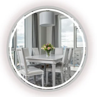 LUSTRO PODŚWIETLANE LED OKRĄGŁE W SREBRNEJ RAMIE PIASKOWANE 50 CM