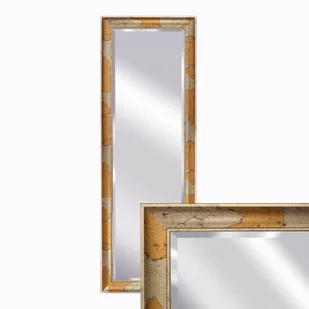 Prostokątne lustro w ozdobnej drewnianej ramie w kolorze złot0-srebrnym. Piękna barokowa rama przyciąga oko a fazowane brzegi lustra odbijają refleksy światł...
