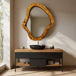 Niebanalne lustro do łazienki z drewna naturalnego (plaster pnia)
