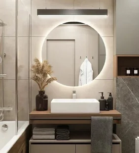lustro okrągłe z oświetleniem LED, średnica: 60 cm, grubość tafli lustra: 4 mm, oświetlenie: taśma LED 60/mb SMD 3528 wodoodporna IP 65 w silikonie, standardowa barwa światła: neutralna/biała (istnieje możliwość zmiany barwy na c
