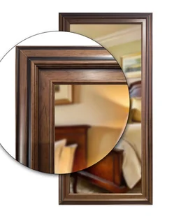 Stylowe, eleganckie lustro w drewnianej ramie Kolor ramy orzech/patyna Wymiar zewnętrzny lustra z ramą: 90 cm x50 cm Szerokość ramy - 7,5cm Lustra w standard...