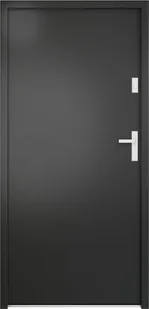 Drzwi o grubości 55 mm wykonane ze stali pokrytej folią dekoracyjną o strukturze i kolorze drewna, odporną na promieniowanie UV. Wypełnienie drzwi stanowi płyta z polistyrenu spienionego. Drzwi wyposażone są w dwa niezależne zamki trzypunktowe, trzy regulowane zawiasy oraz bolce przeciwwyważeniowe. Uszczelki w ościeżnicy oraz progu zmniejszają niechcianą cyrkulację powietrza oraz hałas docierający z zewnątrz. Drzwi zewnętrzne Wysoka odporność na włamanie: