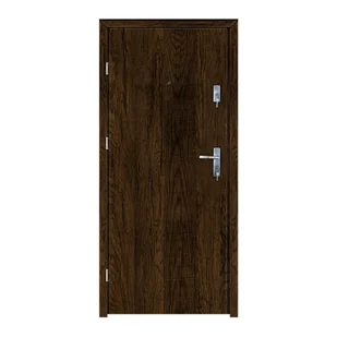 Eleganckie wykończenie. Technologia SOFT nadaje drzwiom elegancki wygląd oraz dodatkową trwałość. Orzechowe wykończenie, które dodaje wnętrzom ciepła i klasycznego uroku. Zestaw zawiera ościeżnicę stałą z uszczelką, opaskę maskującą o szerokości 6 cm, próg ze stali nierdzewnej oraz wszystkie niezbędne okucia i wizjer do samodzielnego montażu. Wysoki poziom bezpieczeństwa zapewniają trzy bolce antywyważeniowe, które zwiększają odporność na włamania.