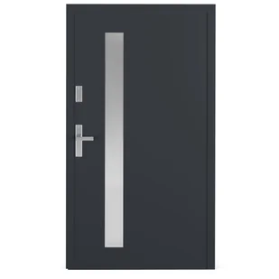 Drzwi zewnętrzne TITANIUM antracytowe 90 lewe to aluminiowo-stalowe drzwi wejściowe łączące świetne parametry techniczne z dużymi możliwościami aranżacyjnymi. W standardowym wyposażeniu znajduje się zamek główny wraz z zamkiem dodatkowym, które gwarantują szczelność drzwi i ochronę przed hałasem, chłodem i wiatrem. Jednoskrzydłowe drzwi zewnętrzne TITANIUM składają się z ościeżnicy wykonanej z kształtowników aluminiowych trzykomorowych, z przegrodą termiczną o głębokości 50 [mm] oraz skrzydła z grubą przylgą o grubości 62 [mm] wykonanego z blachy stalowej o grubości 0,75 [mm]. Wypełnienie skrzydła Skrzydło drzwi TITANIUM o grubości 62 [mm], składa się z dwóch arkuszy blachy stalowej ocynkowanej pomiędzy którymi znajduje się płyta XPS. Skrzydło drzwi jest przeszklone szybą wpuszczaną, dwukomorową, wykończoną naklejanymi aplikacjami ze stali nierdzewnej od strony wewnętrznej skrzydła i malowanymi w kolorze czarnym od strony zewnętrznej skrzydła.
