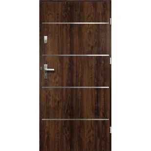 Drzwi zewnętrzne ATENA pełne inox orzech 90 prawe RADEX