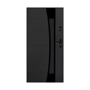 Drzwi wyposażone są w 2 zamki trzy punktowe z czarnym szyldem i klamką.
