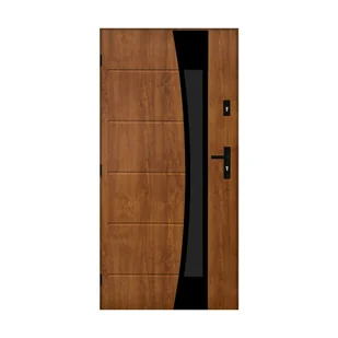 Drzwi wejściowe Lyon złoty dąb 100 lewe posiadają unikalne tłoczenie, solidną grubość 72 mm, która zapewnia wysoką izolacyjność cieplną. Drzwi wykończone są lakierem "Nano Advance" odpornym na uszkodzenia i zarysowania. Ościeżnica drzwi jest składana i łatwa w montażu. Skrzydło wyposażone jest w szybę bezpieczną i wykończone ramką inox szlifowaną która zapewnia piękny wzór drzwi. Skrzydło i ościeżnica wykonane są z blachy ocynkowanej.