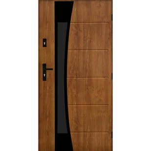 Drzwi wejściowe zewnętrzne stalowe Lyon Black złoty dąb 80 prawe o grubość 72 mm. Drzwi zapewniają wysoką izolacyjność cieplną dla każdego domu. Drzwi wykończone są lakierem "Nano Advance". To Innowacyjna technologia polegająca na powlekaniu powierzchni nanocząsteczkami lakieru proszkowego, utwardzana metodą polimeryzacji. Dzięki temu powierzchnia uzyskuje wysoką jakość wykończenia oraz wysoką odporność na zarysowania i promienie UV.