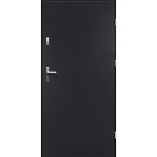 Drzwi wzmocnione otwierane na zewnątrz o grubości 68 mm wykonane z blachy stalowej pokrytej dekoracyjną folią PVC o strukturze i kolorze drewna, odporną na promieniowanie UV. Wypełnienie skrzydła stanowi płyta z polistyrenu spienionego. Skrzydło posiada uszczelki wzdłuż wszystkich czterech krawędzi. W uszczelki wyposażone są również ościeżnice oraz próg. Okucia w zestawie, klamka, szyld , wkładki, bolce antywyważeniowe, uszczelka, próg niski.