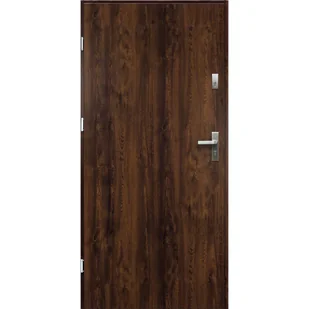 Drzwi wzmocnione otwierane na zewnątrz o grubości 68 mm wykonane z blachy stalowej pokrytej dekoracyjną folią PVC o strukturze i kolorze drewna, odporną na promieniowanie UV. Wypełnienie skrzydła stanowi płyta z polistyrenu spienionego. Skrzydło posiada uszczelki wzdłuż wszystkich czterech krawędzi. W uszczelki wyposażone są również ościeżnice oraz próg. Masywne drzwi, dobre wyciszenie, okucia w zestawie.