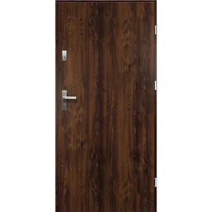 Drzwi wzmocnione otwierane na zewnątrz o grubości 68 mm wykonane z blachy stalowej pokrytej dekoracyjną folią PVC o strukturze i kolorze drewna, odporną na promieniowanie UV. Wypełnienie skrzydła stanowi płyta z polistyrenu spienionego. Skrzydło posiada uszczelki wzdłuż wszystkich czterech krawędzi. W uszczelki wyposażone są również ościeżnice oraz próg. Masywne drzwi, dobre wyciszenie, okucia w zestawie.