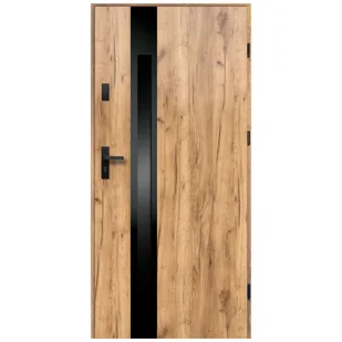 Drzwi zewnętrzne otwierane na zewnątrz BUENA o grubości 68 z szybą czarną shadow zostały wykonane ze stali pokrytej folią dekoracyjną. Wypełnienie drzwi w postaci płyty ze spienionego polistyrenu, który zapewnia odpowiedni poziom izolacji termicznzej. Drzwi zostały standardowo wyposażone w dwa zamki 3-punktowe oraz bolce antywyważeniowe odpowiadając na podstawowe potrzeby bezpieczeństwa. Okucia w zestawie, klamka, szyld , wkładki, bolce antywyważeniowe, uszczelka, próg niski.