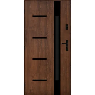 Drzwi wejściowe otwierane na zewnątrz Tulon 90 lewe w kolorze orzech posiadają unikalny wzór tłoczenia. Te solidne drzwi o grubość 72 mm co zapewnia wysoką izolacyjność cieplną. Skrzydło i ościeżnica jest wykończona lakierem (nano advance) odpornym na zarysowania. Ościeżnica jest składana i łatwa w montażu. Zamontowana szyba jest bezpieczna posiada dużą odporność na rozbicie.