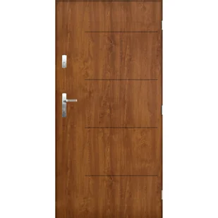 Drzwi zewnętrzne stalowe Kordoba złoty dąb 90P O grubości 55 mm to solidne i trwałe rozwiązanie zapewniające skuteczną izolację termiczną z współczynnikiem przenikania ciepła na poziomie 1,5 W/m²K. Ich lakierowana powierzchnia nadaje elegancki wygląd oraz zwiększa odporność na warunki atmosferyczne. Wypełnienie z polistyrenu ekspandowego gwarantuje doskonałą izolację, chroniąc wnętrze przed chłodem i hałasem. W zestawie znajduje się kompletne wyposażenie, w tym klamka, zamki, wkładki oraz aluminiowy próg, co ułatwia szybki montaż. Dodatkowe bolce antywyważeniowe zwiększają bezpieczeństwo, skutecznie utrudniając włamanie.
