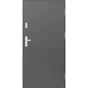 Drzwi Tiera 90 prawe antracyt otwierane na zewnątrz, wykonane zostały w nowoczesnym systemie Passivedoor Ultra, który łączy wysoką trwałość z doskonałymi właściwościami izolacyjnymi. W konstrukcji skrzydła oraz ościeżnicy wykorzystano technologię ABSIGLASS o bardzo dobrych właściwościach termoizolacyjnych – współczynnik Ud wynosi 0,56 W/m²K, co przekłada się na skuteczną ochronę przed utratą ciepła. Drzwi wyposażono w dwa zamki obsługiwane jednym kluczem, a górny zamek posiada wkładko-gałkę niesymetryczną. Trzy podwójne rygle antywyważeniowe oraz zawiasy 3D z możliwością regulacji w trzech płaszczyznach zapewniają odpowiednią stabilność i trwałość całej konstrukcji. Aluminiowy próg z przekładką termiczną i uszczelką maskującą, a także okapnik z uszczelką na dolnej krawędzi skrzydła wspomagają izolację cieplną i zabezpieczenie przed wilgocią.