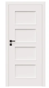 Drzwi wewnętrzne dre modern 10 w białej okleinie o matowym wykończeniu wyróżniają się minimalistycznym wzornictwem z czterema eleganckimi przycięciami. Uniwersalny biały kolor idealnie komponuje się z każdą aranżacją, od klasycznej po nowoczesną. Matowa powierzchnia okleiny jest odporna na zabrudzenia i łatwa w pielęgnacji, zachowując estetyczny wygląd przez lata. Płytowa konstrukcja z drewnianą ramą gwarantuje solidność i stabilność skrzydła drzwiowego. Geometryczne wgłębienia dodają wnętrzu c