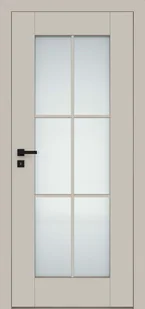 Drzwi wewnętrzne dre z szybą estra 12 wyróżniają się elegancką okleiną w kolorze kaszmiru o matowym wykończeniu. Duże przeszklenia wpuszczają naturalne światło do wnętrza, optycznie powiększając przestrzeń i tworząc przytulną atmosferę. Matowe szkło chroni prywatność domowników, jednocześnie rozjaśniając pomieszczenia. Izolacja akustyczna 27 db skutecznie tłumi dźwięki, zapewniając ciszę w sypialni czy gabinecie. Konstrukcja ramowa z płyty mdf gwarantuje wieloletnią trwałość i stabilność skrzyd