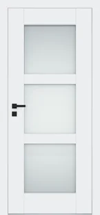 Drzwi wewnętrzne dre estra 4 w białej okleinie o matowym wykończeniu wyróżniają się trzema dużymi przeszkleniami. Szyby rozjaśniają wnętrze naturalnym światłem, zachowując prywatność mieszkańców. Izolacja akustyczna 27 db skutecznie tłumi hałas, zapewniając ciszę w pokoju. Solidna konstrukcja ramowa z płyty mdf gwarantuje trwałość i odporność na codzienne użytkowanie. Białe wykończenie pasuje do każdego wnętrza, nadając mu nowoczesny charakter.