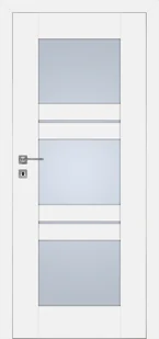 Drzwi wewnętrzne dre piano 4 to eleganckie rozwiązanie z trzema przeszkleniami rozdzielonymi białymi pasami. Matowe szyby wpuszczają delikatne światło do pomieszczenia, zachowując prywatność mieszkańców. Biała okleina o matowym wykończeniu jest uniwersalna i pasuje do każdego wnętrza. Konstrukcja ramowa z mdf gwarantuje trwałość i odporność na codzienne użytkowanie. Dostępne zarówno w wersji przylgowej z tradycyjnymi zawiasami, jak i bezprzylgowej dla efektu nowoczesnej, zlicowanej powierzchni.