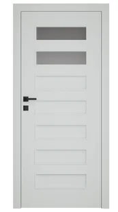 Drzwi wewnętrzne dre z szybą plus 20 w jasnej szarej okleinie o matowym wykończeniu łączą nowoczesny design z funkcjonalnością. Dwa przeszklenia w górnej części wpuszczają naturalne światło do pomieszczenia, rozjaśniając wnętrze i optycznie je powiększając. Elegancka jasna szara okleina jest trwała i odporna, zachowując estetyczny wygląd przez lata bez konieczności częstej konserwacji. Płytowa konstrukcja z drewnianą ramą gwarantuje stabilność i wytrzymałość na codzienne użytkowanie. Dostępne z
