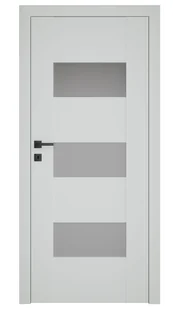 Drzwi wewnętrzne dre z szybą solte 3 wyróżniają się nowoczesnym designem z trzema poziomymi przeszkleniami. Matowe szyby wpuszczają naturalne światło do pomieszczenia, tworząc przyjazną atmosferę i optycznie powiększając przestrzeń. Jasna szara okleina o matowym wykończeniu jest elegancka i odporna na codzienne użytkowanie. Konstrukcja ramowa z mdf gwarantuje trwałość i stabilność skrzydła drzwiowego przez lata. Możliwość wyboru wersji przylgowej lub bezprzylgowej pozwala dopasować drzwi do cha