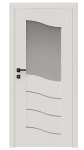 Drzwi wewnętrzne dre z szybą triesta 2 to nowoczesne rozwiązanie łączące funkcjonalność z eleganckim designem. Duże przeszklenie wpuszcza naturalne światło do pomieszczenia, optycznie je powiększając i tworząc przyjazną atmosferę. Biała matowa okleina jest trwała i łatwa w pielęgnacji, idealnie komponując się z każdym wnętrzem. Konstrukcja ramowa z płyty mdf gwarantuje stabilność i odporność na codzienne użytkowanie. Faliste linie na skrzydle dodają dynamiki i charakteru, wyróżniając drzwi spoś