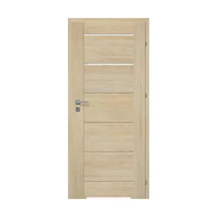 Skrzydło drzwiowe 60 prawe z podcięciem wentylacyjnym z kolekcji Arak wykonane są w konstrukcji ramowej. Drzwi zostały wykończone okleiną polipropylenową w kolorze dąb marone o strukturze i rysunku drewna, która imituje powłokę naturalnego drewnianego forniru. Okleina charakteryzuje się odpornością na zarysowanie i ścieranie. Drzwi wewnętrzne doskonale prezentują się w nowoczesnych wnętrzach.