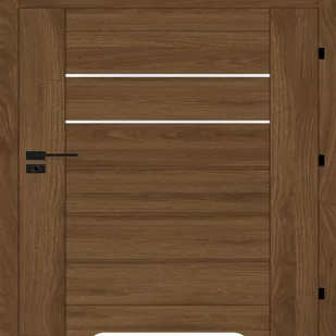Drzwi wewnętrzne Sangres o solidnej konstrukcji ramowej, łazienkowe 80 prawe z podcięciem wentylacyjnym. Skrzydło wyróżnia się nowoczesnym wzornictwem i kolorystyką. Wykończone jest folią 3D z odwzorowaniem wyglądu i struktury drewna, okleina jest odporna na ścieranie. Folia 3D w odcieniu orzech michigan, wpisuje się w najnowszy trend kolorystyczny w architekturze wnętrz.