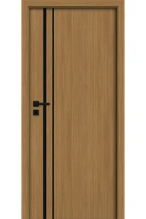 Drzwi wewnętrzne pol-skone pełne salea vd9 w kolorze dębu polskiego wyróżniają się minimalistycznym wzorem czarnych linii na tle naturalnej okleiny. Nowoczesny design z subtelnymi akcentami nadaje wnętrzu elegancki charakter. Płytowa konstrukcja z drewnianej ramy zapewnia stabilność i wieloletnią trwałość. Laminowane wykończenie jest odporne na zabrudzenia i łatwe w czyszczeniu. Dostępne zarówno w wersji przylgowej z widocznymi zawiasami, jak i bezprzylgowej dla efektu zlicowanej powierzchni ze