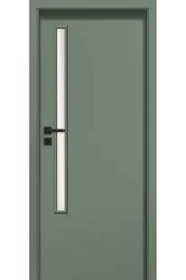 Drzwi wewnętrzne pol-skone z szybą haptic 05 w kolorze verde wprowadzają do wnętrza nowoczesną elegancję. Wąskie pionowe przeszklenie wpuszcza naturalne światło, optycznie powiększając przestrzeń i rozjaśniając pomieszczenie. Zielony odcień verde nadaje wnętrzu oryginalny charakter i harmonizuje z nowoczesnymi aranżacjami. Drewniana konstrukcja płytowa zapewnia trwałość i stabilność przez lata użytkowania. Dostępne w wersji przylgowej z tradycyjnymi zawiasami lub bezprzylgowej dla efektu zlicow