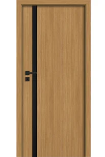 Drzwi wewnętrzne pol-skone z szybą impuls w14 łączą ciepły odcień dębu polskiego z nowoczesnym czarnym akcentem dekoracyjnym. Pionowy pas szyby wpuszcza naturalne światło do pomieszczenia, tworząc efekt przestronności i lekkości. Konstrukcja płytowa z mdf gwarantuje wysoką wytrzymałość i stabilność skrzydła drzwiowego przez lata użytkowania. Trwałe wykończenie w kolorze dębu polskiego jest odporne i zachowuje naturalny charakter drewna. Dostępne w wersji przylgowej lub bezprzylgowej, która zape