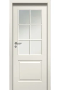 Drzwi wewnętrzne pol-skone z szybą modern 02s6 łączą klasyczną elegancję z funkcjonalnością dzięki sześciu przeszklonym polom. Matowe wykończenie w kolorze białym nadaje wnętrzom świeżości i ponadczasowego charakteru. Przeszklenia wpuszczają naturalne światło, optycznie powiększając przestrzeń i tworząc przyjazną atmosferę w domu. Solidna konstrukcja ramowa z materiałów drewnianych gwarantuje trwałość i stabilność przez lata użytkowania. Możliwość wyboru wersji przylgowej lub bezprzylgowej pozw