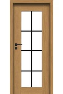 Drzwi wewnętrzne pol-skone z szybą samos v1s8 wyróżniają się eleganckim przeszkleniem podzielonym czarnymi szprosami. Naturalna okleina w kolorze dębu polskiego nadaje wnętrzu ciepły, klasyczny charakter i jest odporna na codzienne użytkowanie. Konstrukcja ramowa z płyty mdf zapewnia stabilność i trwałość przez lata. Przeszklenie wpuszcza światło do pomieszczenia, optycznie je powiększając i tworząc przyjazną atmosferę. Dostępne w wersji przylgowej z tradycyjnymi zawiasami lub bezprzylgowej dla