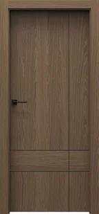 Drzwi wewnętrzne porta natura verdino v. 2 zachwyca wyjątkowym designem z intarsjami w ciepłym odcieniu orzecha taupe. Matowe wykończenie okleiny nadaje wnętrzu elegancji i nowoczesnego charakteru, idealnie komponując się z minimalistycznymi aranżacjami. Płytowa konstrukcja z drewnianą ramą gwarantuje trwałość i stabilność przez lata użytkowania. Intarsje tworzą subtelny akcent dekoracyjny, który wyróżnia model spośród standardowych rozwiązań.