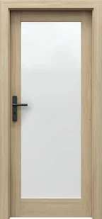 Drzwi wewnętrzne z szybą porta balance b. 1 łączą naturalną elegancję dębu z funkcjonalnością przeszklenia. Matowe wykończenie okleiny dębowej nadaje wnętrzom ciepły, ponadczasowy charakter. Duża szyba zajmująca centralną część skrzydła wpuszcza światło między pomieszczeniami, optycznie powiększając przestrzeń. Ramowa konstrukcja z mdf i drewna klejonego gwarantuje trwałość i stabilność na lata.