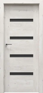 Drzwi wewnętrzne porta inspire c. 4 z czarnymi szybami tworzą elegancką kompozycję skandynawskiego dębu i nowoczesnych akcentów. Cztery poziome przeszklenia wpuszczają naturalne światło, optycznie powiększając przestrzeń i łącząc pomieszczenia. Czarne szyby nadają wnętrzu charakteru, jednocześnie zapewniając dyskrecję. Okleina w odcieniu dębu skandynawskiego jest trwała i odporna, zachowując naturalny wygląd drewna przez lata.