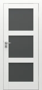 Drzwi wewnętrzne porta grande b. 3 w białym lakierze łączą nowoczesny design z funkcjonalnością. Trzy eleganckie przeszklenia wpuszczają naturalne światło do wnętrza, optycznie powiększając przestrzeń i tworząc jasną atmosferę. Matowe szyby chronią prywatność domowników, pozwalając jednocześnie na swobodny przepływ światła między pomieszczeniami. Biały lakier jest trwały i łatwy w pielęgnacji, zachowując nieskazitelny wygląd przez lata.
