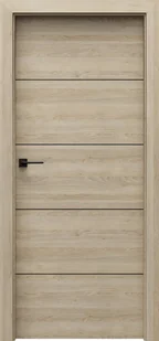 Drzwi wewnętrzne porta resist e. 1 z szybą w okleinie dębowej o piaskowym odcieniu wprowadzają do wnętrza naturalną elegancję. Przeszklenie wpuszcza światło między pomieszczeniami, tworząc przyjazną atmosferę i optycznie powiększając przestrzeń. Solidna płytowa konstrukcja z drewnianą ramą gwarantuje stabilność i odporność na codzienne użytkowanie przez lata. Okleina jest trwała i łatwa w pielęgnacji, zachowując szlachetny wygląd naturalnego drewna.