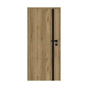 Skrzydło Pallmer 80 lewe pełne to wysokiej jakości drzwi wewnętrzne płytowe. Skrzydło wyróżnia się nowoczesnym wzorem i kolorystyką. Skrzydło wykończone jest folią 3D która w piękny sposób odwzorowuje wygląd i strukturę prawdziwego drewna. Okleina jest odporna na ścieranie. Folia 3D w odcieniu orzech włoski, połączona jest z wąskim stylowym pionowym czarnym pasem który nadaje charakteru i nowoczesnego designu skrzydła Pallmer.
