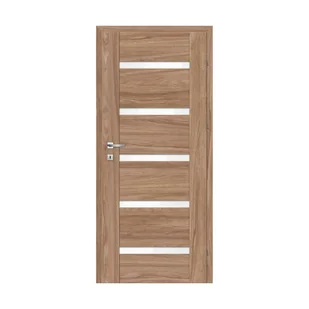 Skrzydło drzwiowe z kolekcji Tinos 80 prawe pokojowe wykonane jest w konstrukcji ramowej. Wykończenie powierzchni okleiną 3D w kolorze orzech karmel o strukturze i rysunku drewna, wspaniale imituje powłokę naturalnego forniru. Charakteryzuje się odpornością na zarysowanie i ścieranie. Skrzydło dedykowane jest do nowoczesnych i jasnych wnętrz. Skrzydło posiada przeszklenie w formie 5 poziomych szyb białych mlecznych.