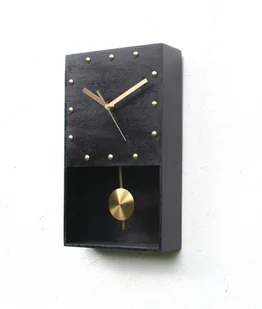 Drewniany Czarny zegar ścienny z wahadłem - bez tykania
